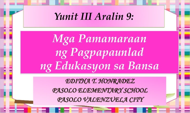 Yunit Iii Aralin 9mga Pamamaraan Ng Pagpapaunlad Ng Edukasyon Sa Bansa