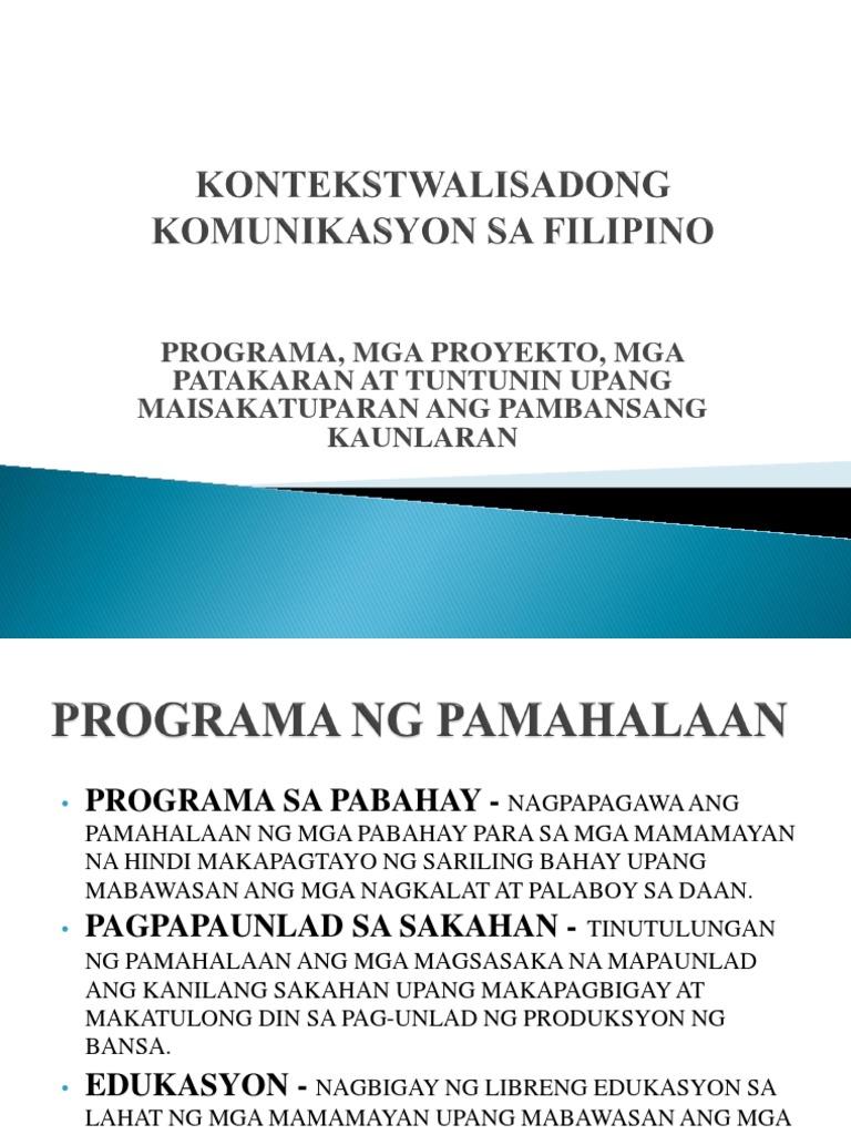 6112020 Mga Programang Nagsusulong ng Pagkakapantay-Pantay sa Edukasyon 1. 16102012 Programang pangkalusugan at pang-edukasyon inihatid sa Calatagan. Masayang sinalubong ng opisyal ng Kagawaran ng Edukasyon ang delegasyon ng pamahalaang panlalawigan na pinangunahan ni schools division.
