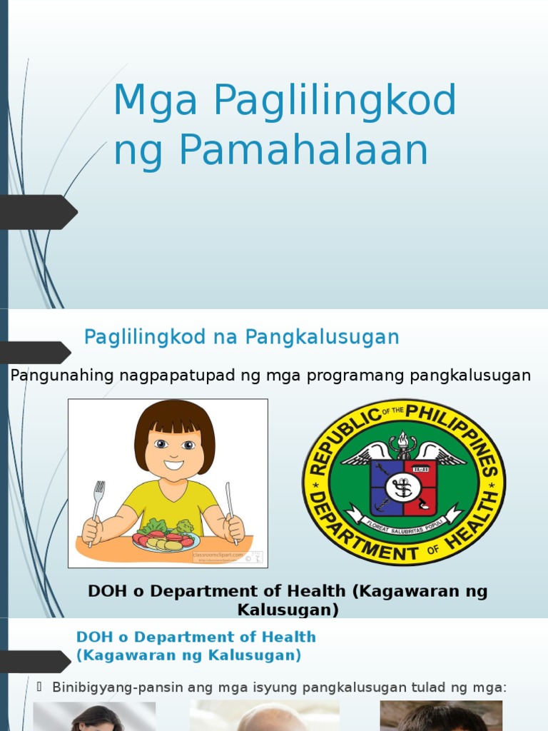 4102017 Tayo ay nagpupugay sa kanila dahil sa kanilang pasensya katapangan at dalisay na paglilingkod upang maisulong ang karapatan sa edukasyon paggalang sa kultura at pagtamasa ng serbisyong sa katunayan ay tungkulin ng pamahalaan. Para sa mga inang nagbubuntis at mga sanggol. DOH o Department of Health Kagawaran ng Kalusugan DOH o Department of Health Kagawaran ng Kalusugan Binibigyang-pansin ang mga isyung pangkalusugan tulad ng mga.